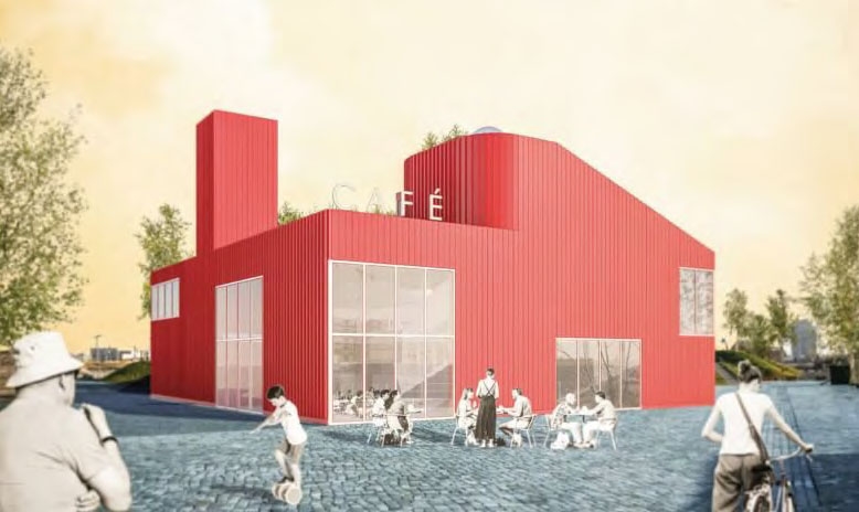 Das Gemeinschaftshaus in der westlichen HafenCity befindet sich direkt auf dem Spielplatz-Areal und ist barrierefrei über die Straße Am Grasbrookpark erreichbar